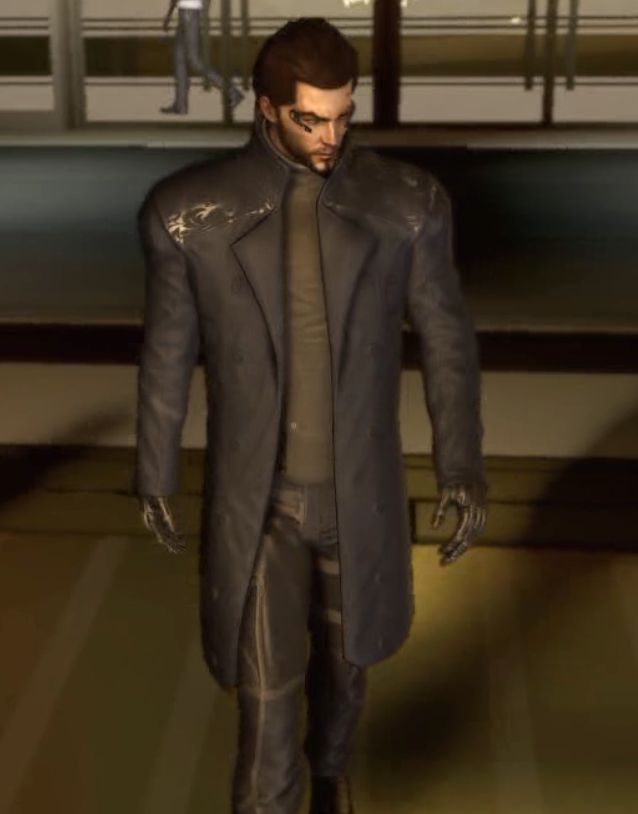 - His original set of eye-shields from Deus Ex: Human Revolution were heavily damaged during the events of Deus Ex: Black Light, being replaced by the set he wears in Deus Ex: Mankind Divded.