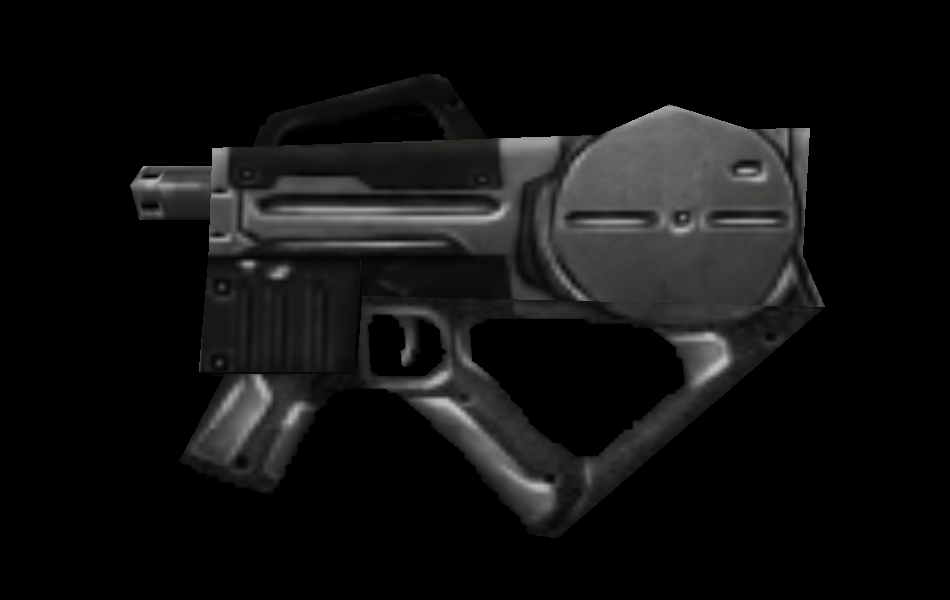• The gun's ammo is 7.62x51mm. However, the real-world 7.62x51mm NATO is generally not used in weapons as compact as this assault rifle. The developers probably meant 7.62x39mm (ammunition used in AK-47/AKM family of assault rifles. Sometimes 7.62x39mm is confused with more powerful 7.62x51mm NATO) or 5.56x45mm (NATO-standard assault rifle-grade ammunition, first used in AR-15/M-16 assault rifles), since the weapon is far too compact and the damage values are too low for it to fire a round comparable to the .30-06 used by the sniper rifle.