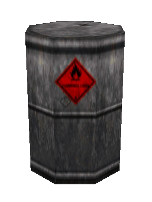 The different types of barrels are listed below, ordered by their texture number. Internally, barrel types are defined by the SkinColor attribute (e.g., SkinColor = SC_Explosive, for the explosive barrel).