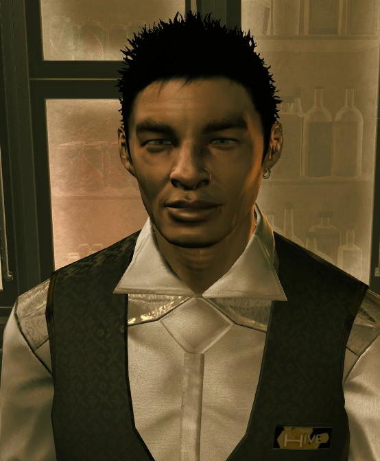 Bobby Bao is a character in Deus Ex: Human Revolution. He is a bartender at the nightclub The Hive in Hengsha, involved in the Bar Tab side quest.