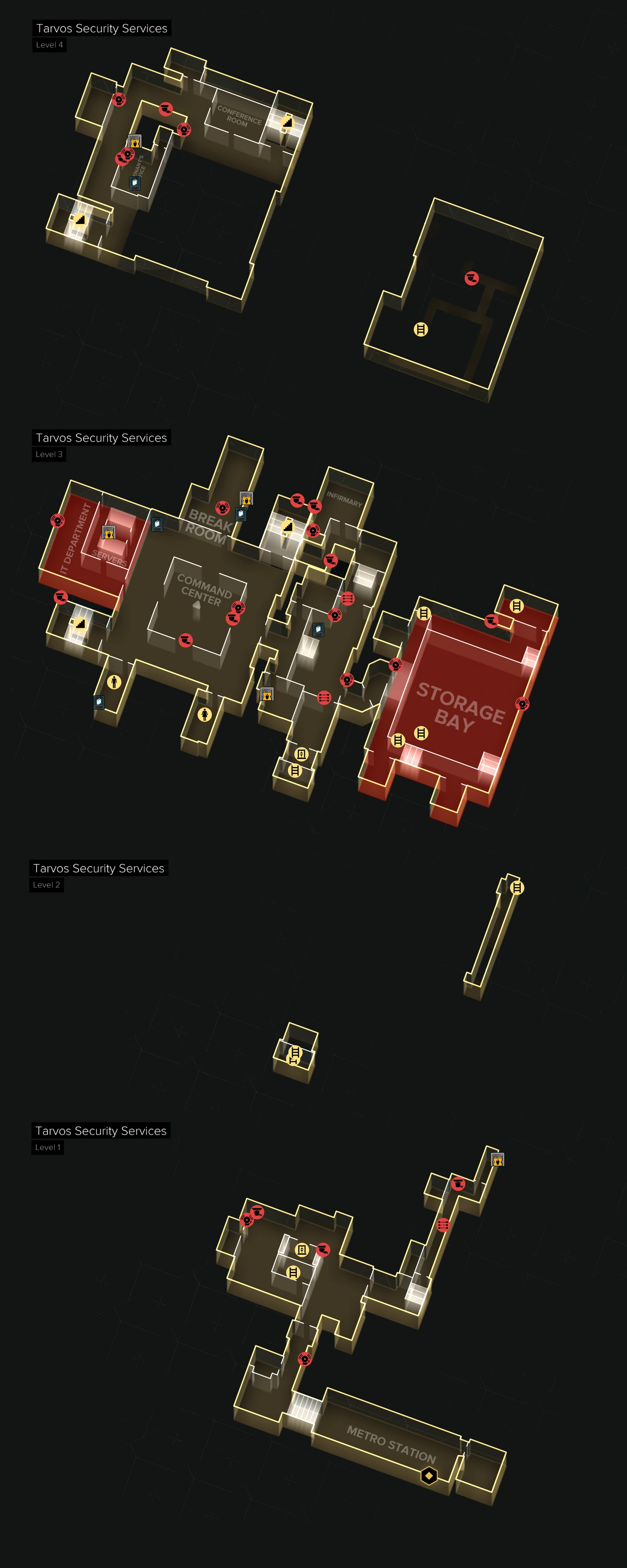 - Tarvos: Mission Statement & Company Bio (also found in the main game), first floor of Command Center, to the left of the break room entrance.