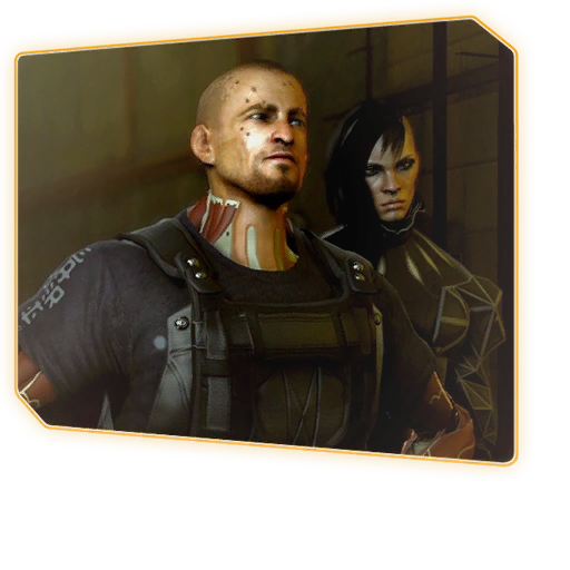 | Ezekiel "Zeke" Sanders, is a member of the extremist anti-augmentation group Purity First. He orchestrates an attack on Sarif Industries' manufacturing plant to search for evidence of illegal activities. | Yune is an augmented hacker that poses as a member of Purity First, despite the fact that Augs are not allowed into the group. He is in fact being remotely "controlled" by a professional hacker hired by competitors of Sarif Industries. |