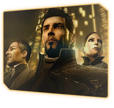 | Publicly, not much is known about Page. He is the CEO of VersaLife and its parent company Page Industries. He is also a high ranking member of the secret organization known as the Illuminati. | Adam Jensen is the protagonist of Deus Ex: Human Revolution. He is the Head of Security of Sarif Industries, and the ex partner of one of Sarif's top scientists, Megan Reed. | Megan Reed is the lead researcher on mechanical augmentations for Sarif Industries. She makes a groundbreaking finding related to augmentations that promises to revolutionize the industry. |