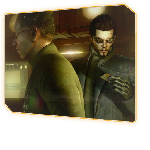 As part of her research for the biotechnology company Sarif Industries, Megan Reed discovered a way for humans to receive mechanical augmentations without suffering from the rejection syndrome known as Darrow Deficiency Syndrome. Her findings could revolutionize the augmentations industry as it would remove the need for the anti-rejection drug, Neuropozyne. This, in turn, would allow augmentation technology to reach a much larger number of people as only one in every 25 people are augmented at the time.[1] Reed and her team are scheduled to present their research to the National Science Board in Washington D.C. and so Reed spends the night before these hearings checking on her team. Meanwhile, Sarif Industries' Chief of Security, Adam Jensen, is finalizing security details for the team when he is requested to visit his boss, David Sarif, for one last briefing on his security plans.