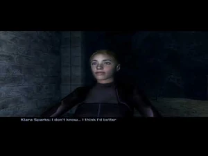 Once done speaking with Nassif, proceed south down the hallway. At the end, the hall will open up in to a small room and a staircase down to the lower level. Note: there are several vending machines on this level that will sell the player snacks or soda for 20 credits each. Do not purchase anything at this time: you will need your starting credits later to advance the plot and accept your first paying missions. Proceed to the south end of the room with the stairwell, and you will be greeted by Klara Sparks in a sort of medical bay. Klara is very friendly towards Denton. Denton asks her what is happening with the explosions, but she simply dismisses them as demolition. Klara asks Denton if he's doing ok after what happened to Chicago and if any of his family was hurt. When Denton tells her that his foster parents were there, she is very apologetic and tells Denton to let her know if there's any way she can make him feel more at home.