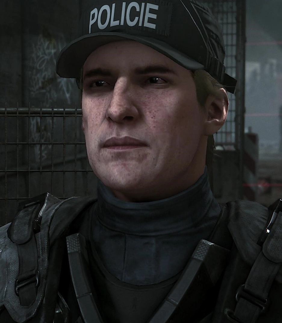 When he and his cohorts discover the permit forger Milena Epstein working in the same area, Drahomír knew he'd just found his golden goose. By keeping Milena hostage in the factory, Drahomír extorts local augmented people by forcing them to fork over large sums of credits for fake documents created by Milena.