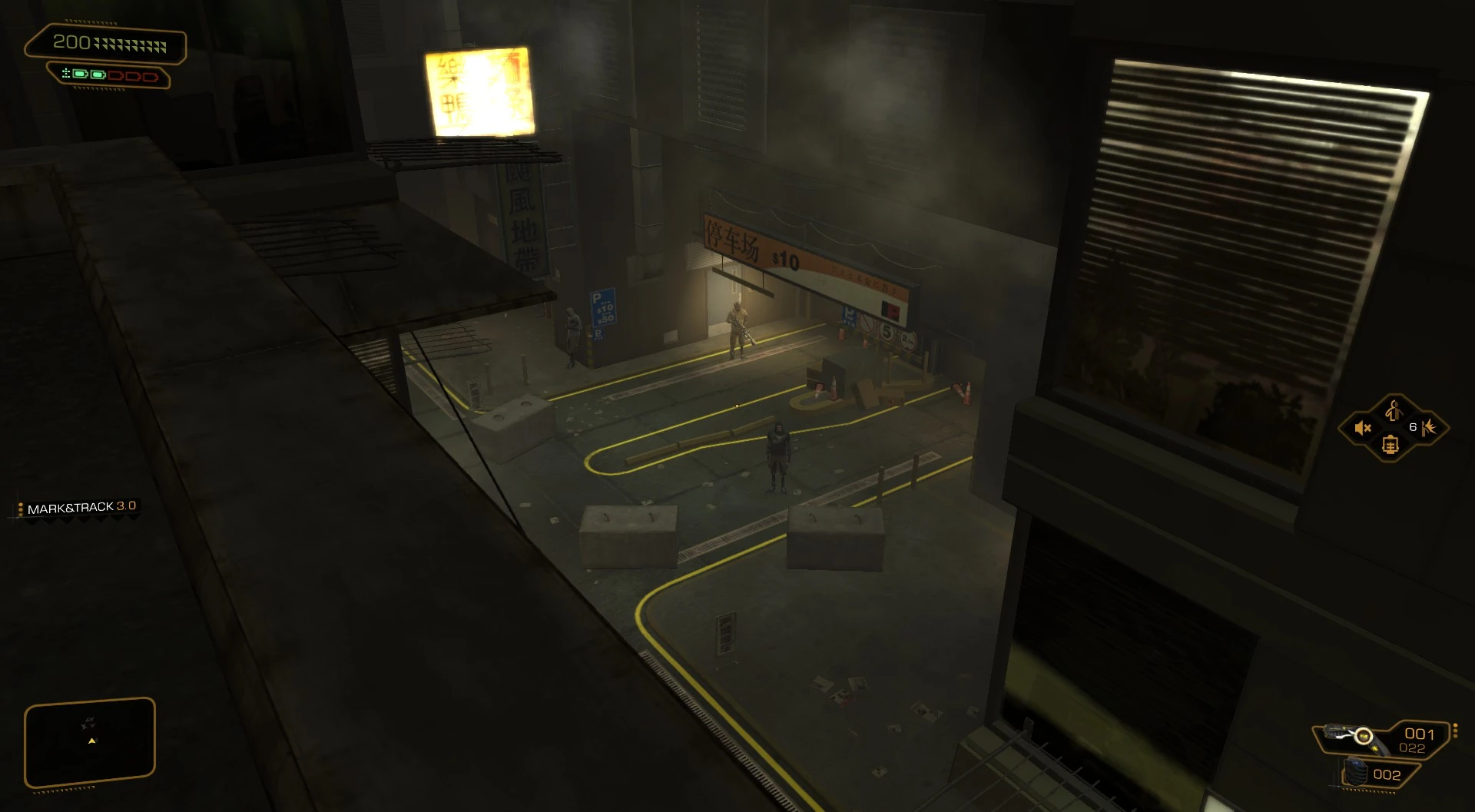 During Jensen's second visit to Hengsha, however, the compound is very populated and on alert. It has multiple levels with several methods of entry, most of which are heavily guarded, and about 20 more guards within. Tong Si Hung can be found inside, on the bottom level.