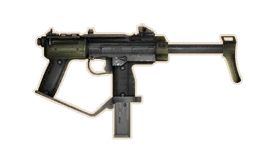 This weapon possesses standard iron sights, a retractable stock and a vertical foregrip that curves outwards. This light submachine gun uses special 123 grain 9mm Parabellum jacketed hollow point bullets, which provide greater stopping power than the conventional 9mm bullet. The Hurricane is compatible with several upgrades: the 30 round magazine increases in capacity by 10 rounds for every ammo capacity upgrade applied, a Laser Targeting System increases shoulder-firing accuracy, a suppressor renders the weapon virtually silent, and a Target-Seeking System allows bullets to home in on their intended target in a somewhat wide arc.