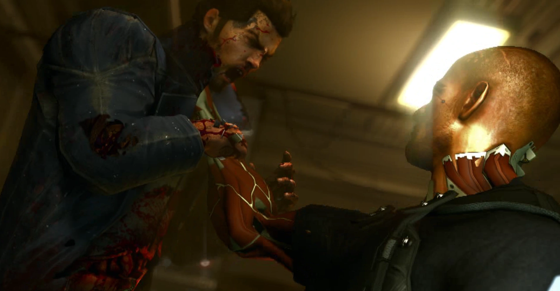 Tyrant leader, Jaron Namir attempting to kill Adam Jensen