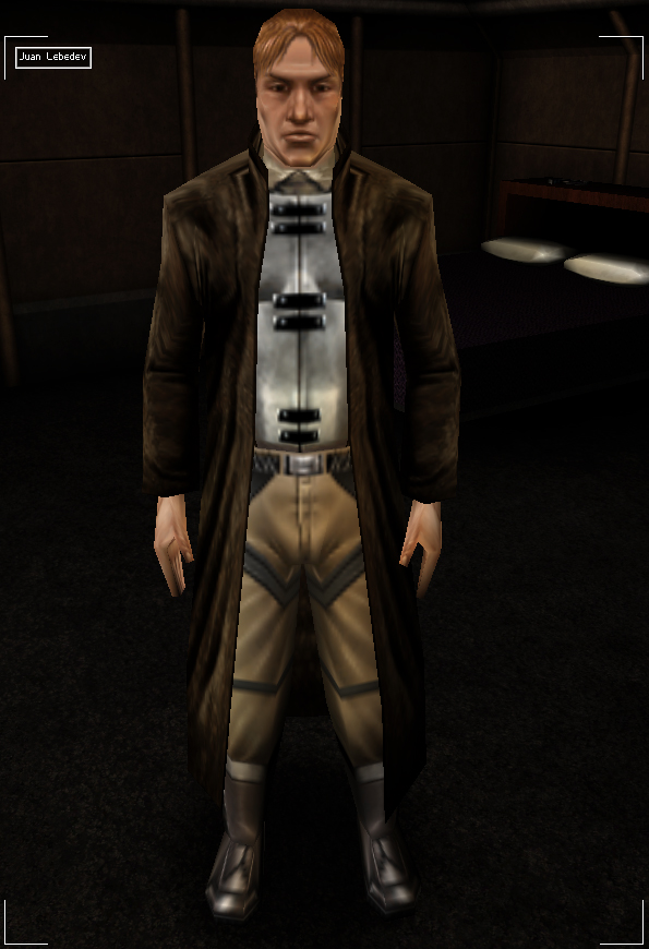 - In a design document for Shooter: Majestic Revelations, an early conception of Deus Ex, Juan Ivanovich Lebedev is a drug lord with strong ties to the Russo-Mexican Alliance, a military alliance between Russia and Mexico. This may explain why his full name, which was unchanged through the release of Deus Ex, includes both Spanish and Russian words. In the final game and subsequent canonical media, Lebedev is not explicitly associated with either Russia or Mexico, and has only been described in Deus Ex: Icarus Effect as having a mixed heritage.