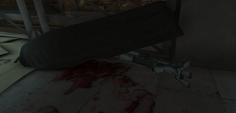 Once inside, head to the second floor and access the drug lab. Inside the lab, there will be a couple of guards patrolling the central area. Luis is in a room in the northwest section--the place is full of shelves stacked with body bags. Look for an augmented leg and take it.