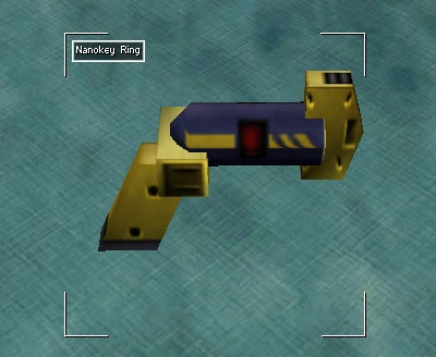 The keyring uses "nanokeys", blue cylinders that must be collected for a keyring to access a target. The keyring is always in the player's inventory, and cannot be dropped or removed from their item queue. Neither it nor nanokeys take up space in the player's inventory grid.