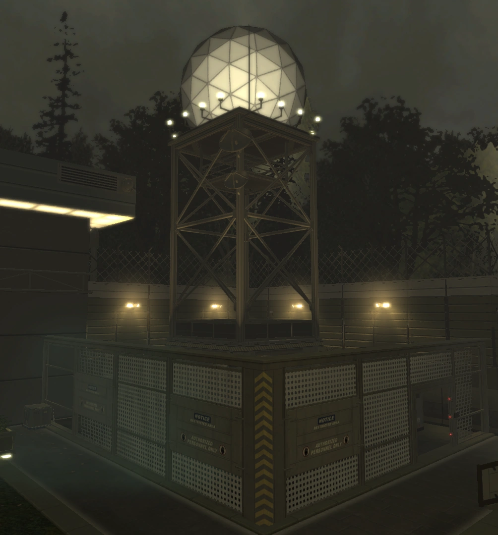In his quest to locate the missing scientists, Adam Jensen travels to Omega Ranch via an XNG Shipping vessel. In anticipation of Jensen's attempt to rescue the scientist, Jaron Namir requests that Belltower reinforcements be deployed to Omega Ranch.[7] Namir himself stays at the facility to guard it personally. In order to find the exact location of the scientists, Jensen must first find and disengage a signal jammer. He locates this jammer on a tower supporting a radome opposite the Bio-Mech Lab.