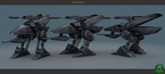 The most uncommon bot, the RB-76 Military bot are extremely tough and extremely large. It is typically deployed in open, outdoor spaces and wield a very powerful anti-personnel rocket launchers and even if you are fleeing at maximum speed from one, they can still often catch you with the radius explosion of their rockets. Luckily, their large size makes them very cumbersome and easy to avoid. They are the only bot which will survive an EMP grenade.