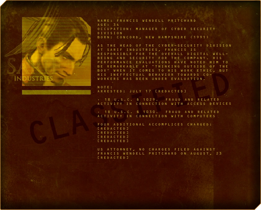 The following employees are confirmed employees of Sarif Industries, but their job titles are not known.
