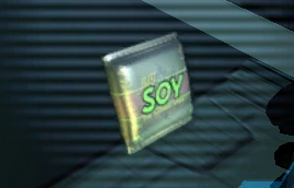Soy is a consumable item in Deus Ex: Invisible War. As a food item, consumption of a soy packet restores 8 HP. Food of all types stack in a single inventory slot, up to a maximum of 50 food items per stack.