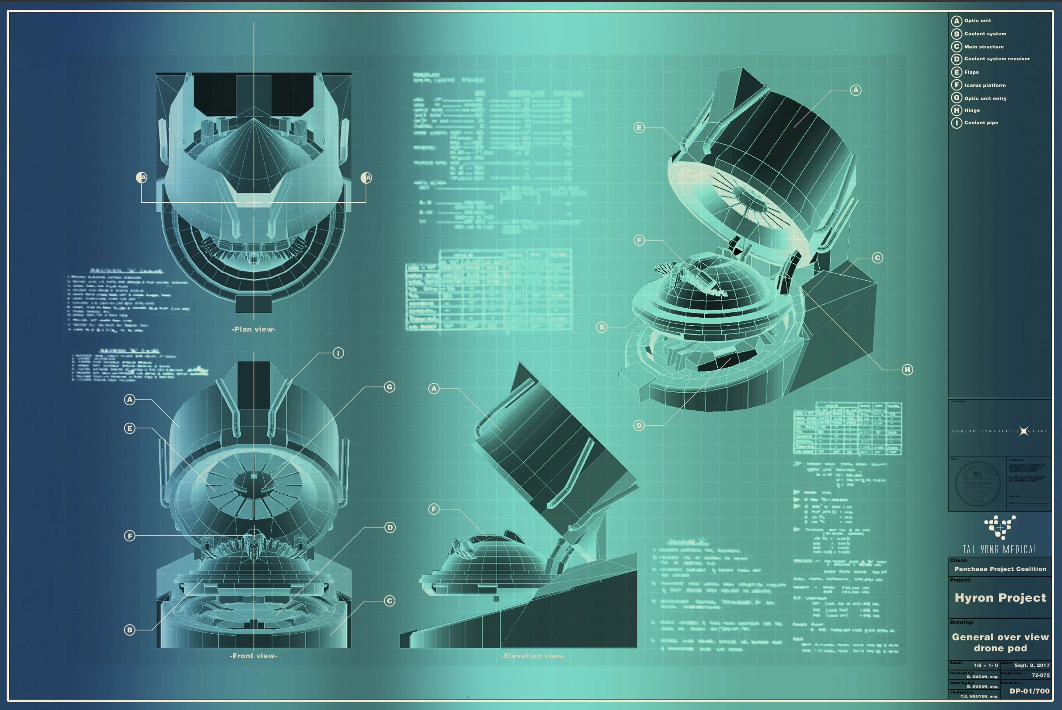 Other Illuminati projects undertaken by Tai Yong Medical include the secretive Hyron Project, which aimed to create a supercomputer using human drones. TYM was responsible for designing multiple components of the Hyron computer including the drone suit rig and coolant system, as well as the drone pods that connect to the central computer.[17] TYM's CEO, Zhao Yun Ru, had direct involvement with this scheme. Blueprints of the various components can be found in her penthouse in addition to a prototype drone suit.
