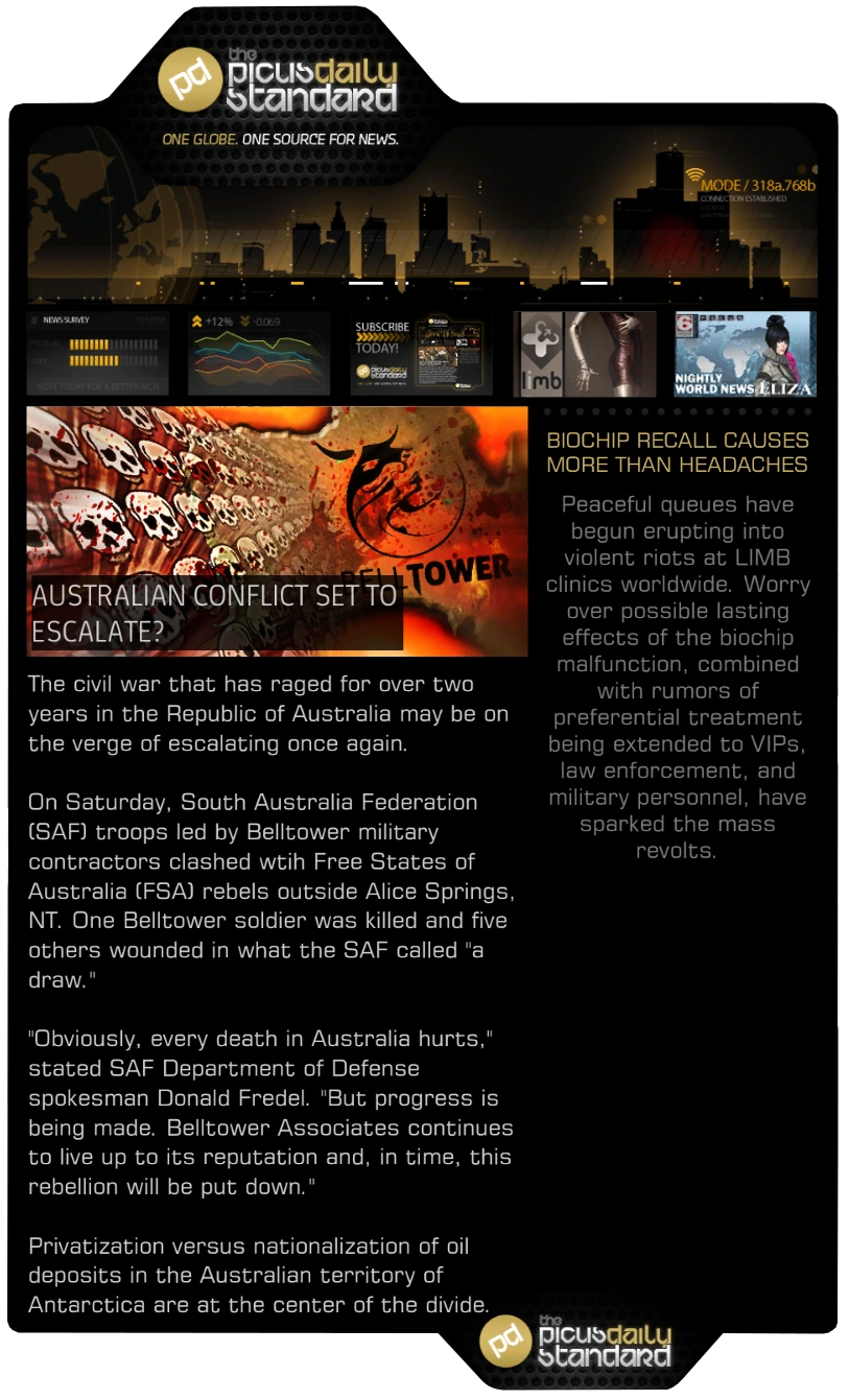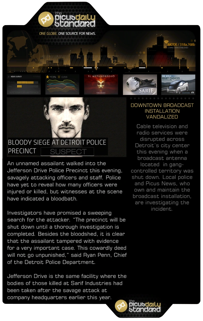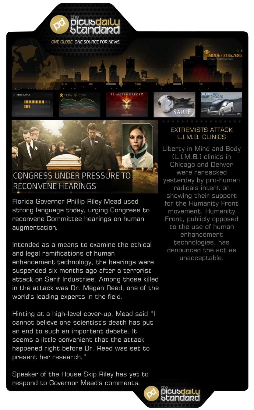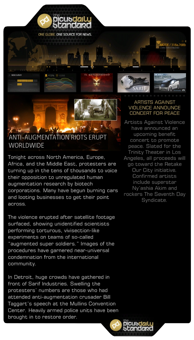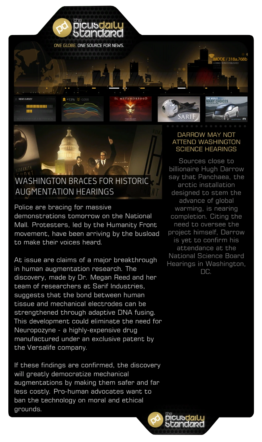 - This article is about the issues in Human Revolution. For the newspapers in Mankind Divided, see The Picus Daily Standard (DXMD).