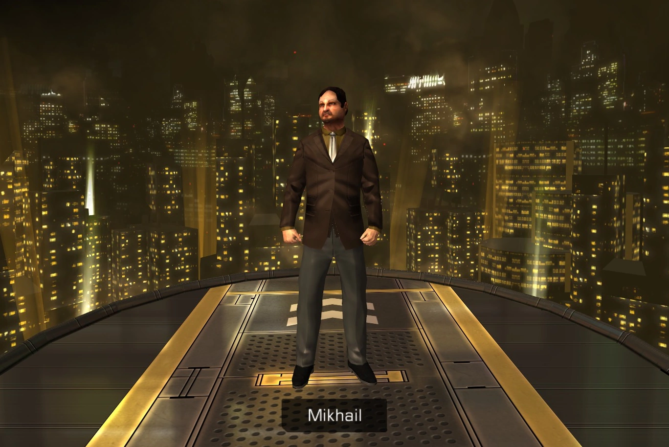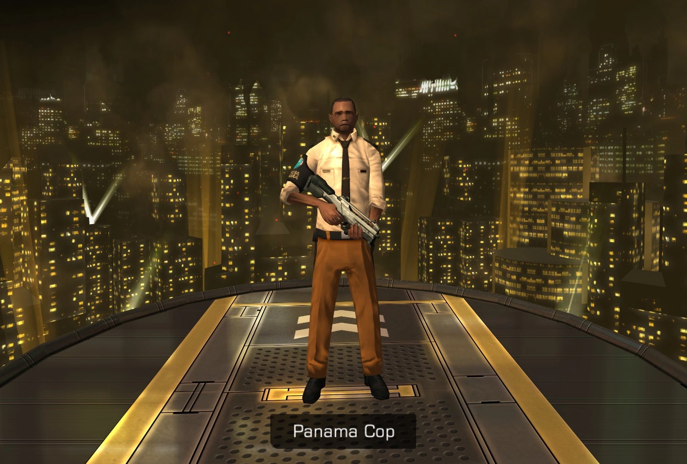 The Turntable is a feature of Deus Ex: The Fall which displays a number of characters and character types encountered during the course of the game. Initially, none of the models are visible except in outline form; as ID files are found, more models are progressively unlocked. Models may be rotated and zoomed in upon. Each performs an 'idle' animation loop.